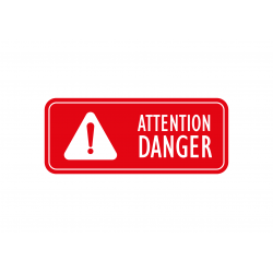 Autocollant mentionnant le texte "Attention Danger". Ce sticker peut-être collé en intérieur comme en extérieur, pendant des années. Il résistera sans problème à l'humidité et aux rayons U.V.